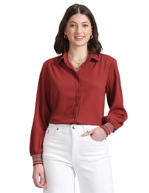 Women’s Polyester Regular Fit Shirt offers a sleek, lightweight feel with a classic fit—perfect for effortless style and everyday comfort.