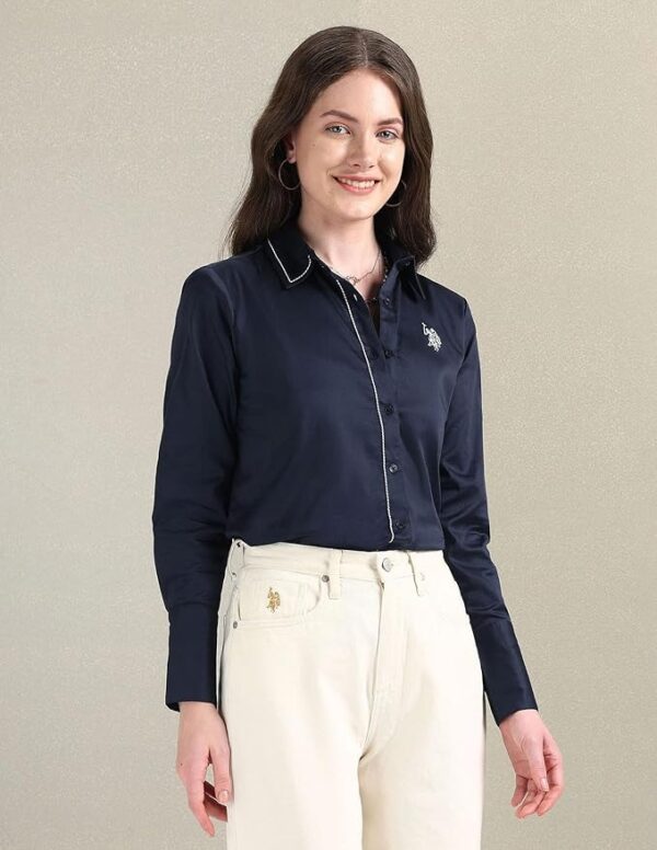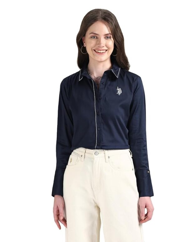 Women’s Cotton Regular Fit Shirt. Made from soft, breathable cotton, this shirt offers lasting comfort and a relaxed yet flattering silhouette. Featuring classic details and the signature U.S. Polo Assn. logo, it’s perfect for both casual outings and smart-casual looks.